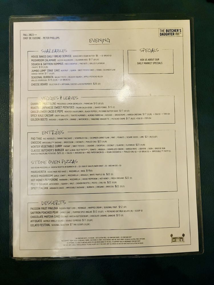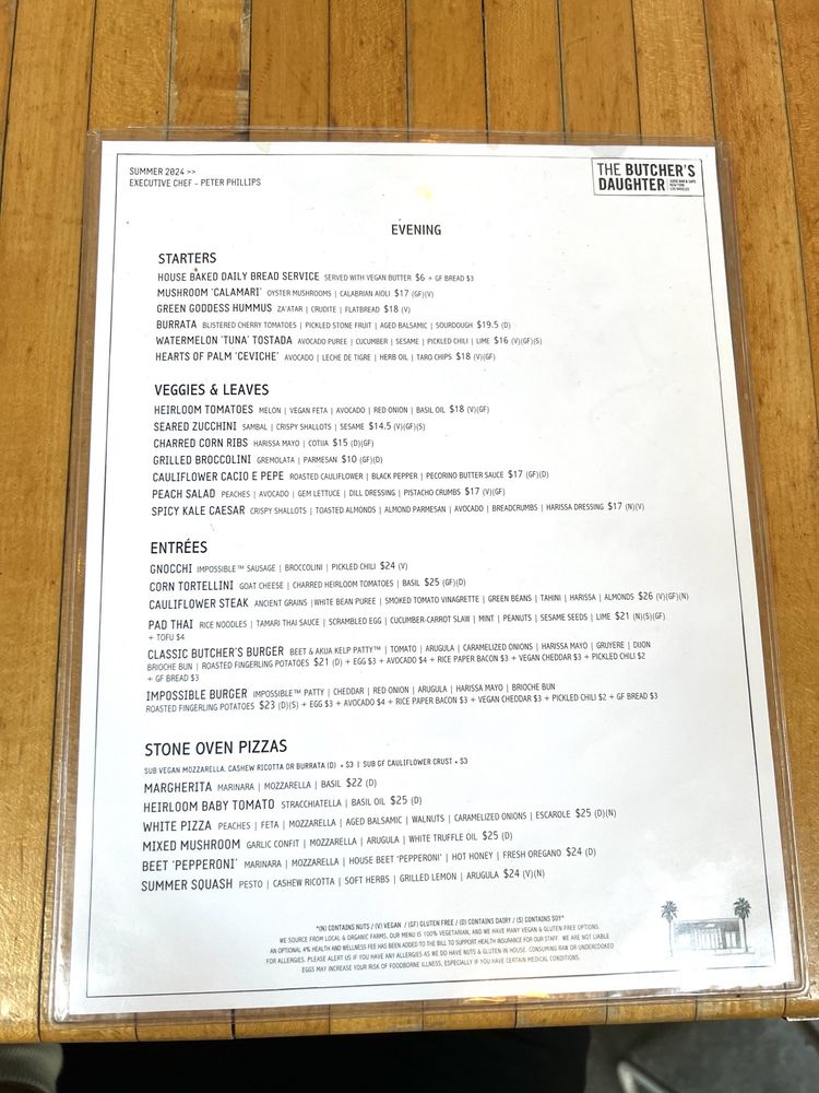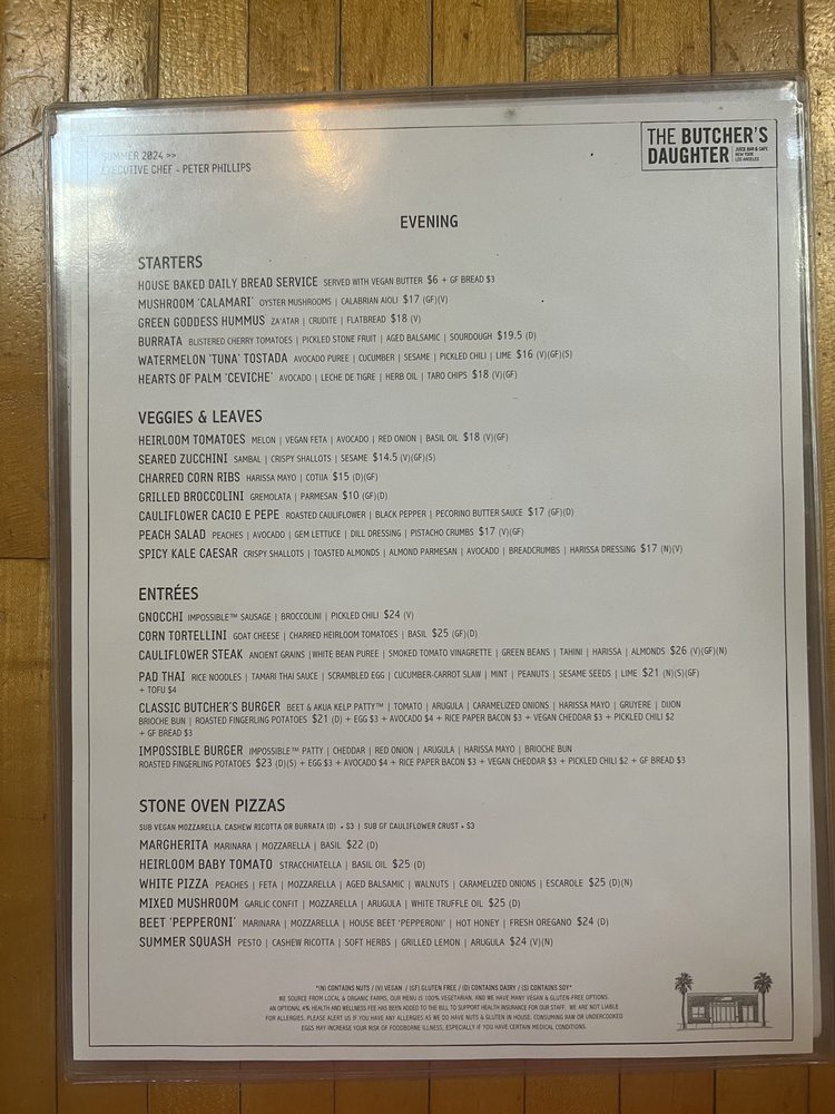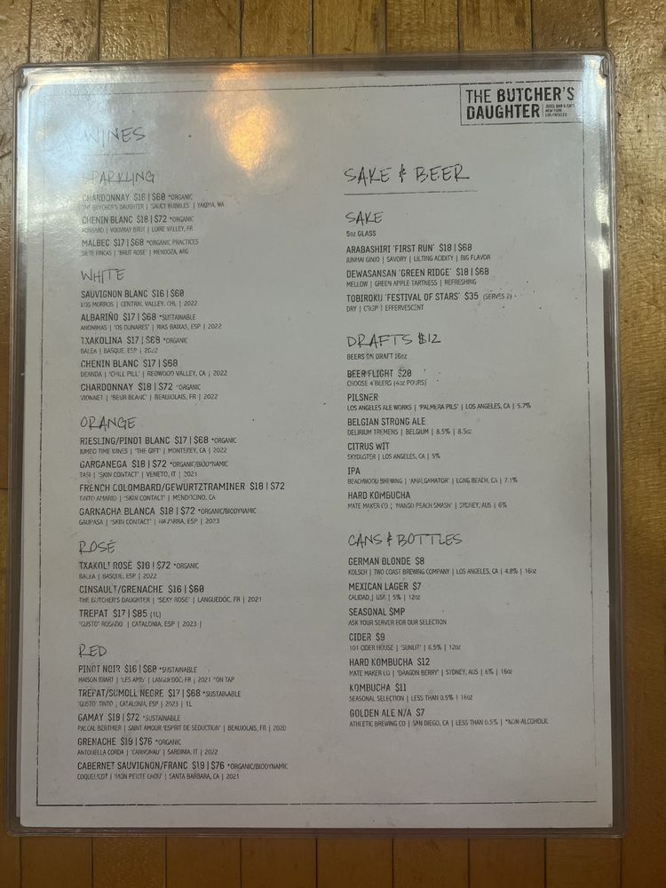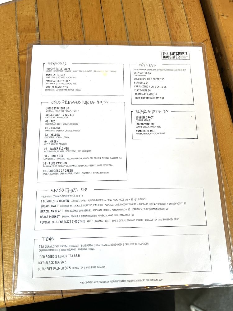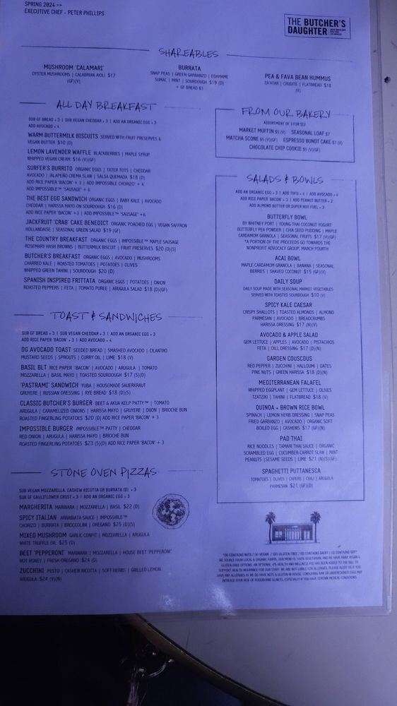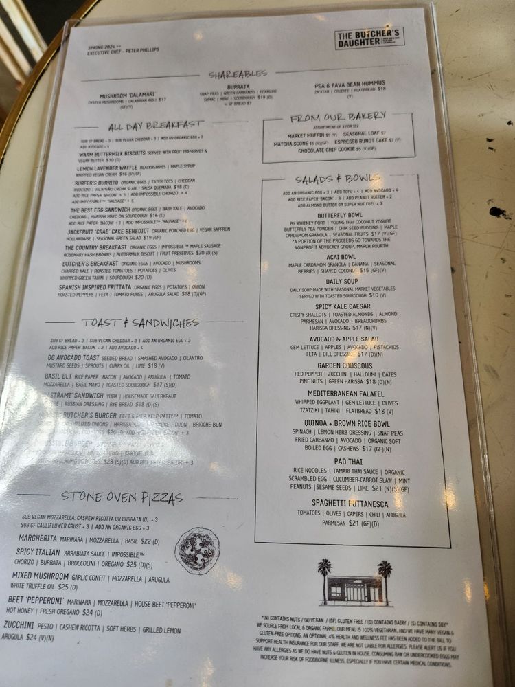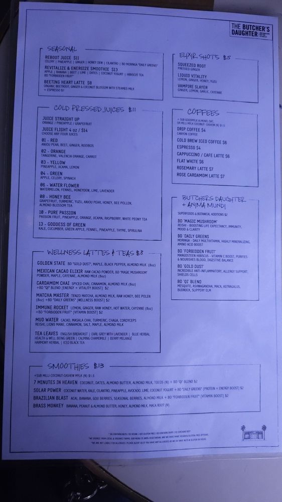 Introducing The Butcher’s Daughter, a trendy and hip restaurant in Venice, CA that offers a variety of vegan and vegetarian options. This women-owned establishment provides a welcoming atmosphere with wheelchair accessibility and gender-neutral restrooms. The menu features innovative dishes like the HOT HONEY & BEET PEPPERONI PIZZA and the CAULIFLOWER CACIO E PEPE. Customer reviews praise the fresh and delicious food, with recommendations for the mushroom calamari, kale salad, and the Surfer's Burrito. The Butcher’s Daughter is a go-to spot for those looking for healthy and flavorful meals, with unique offerings like the jalapeño cheddar biscuits. Indulge in their expertly crafted cocktails and fresh juices while enjoying the vibrant ambiance. The Butcher’s Daughter is a must-visit for both plant-based enthusiasts and food lovers alike.